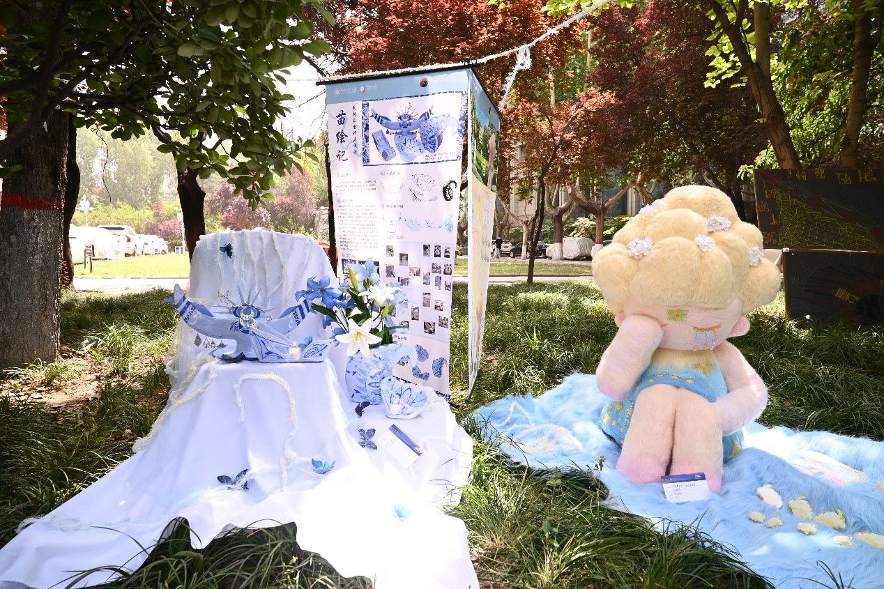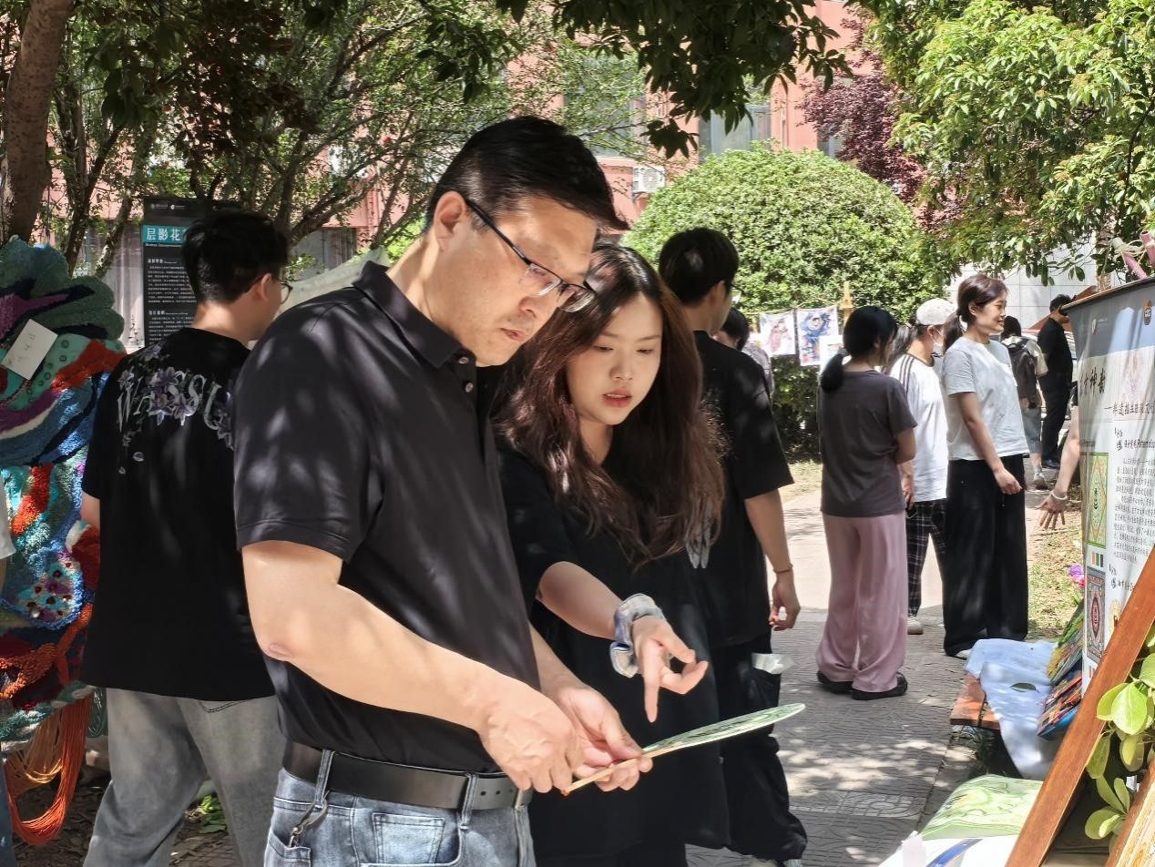 产品设计系于金花校区1号楼南侧草坪广场,举办“心手合一 格物知美”学生作品主题展览,自上午10:30持续至下午18:00,以百余件原创设计诠释传统与现代的创意融合。