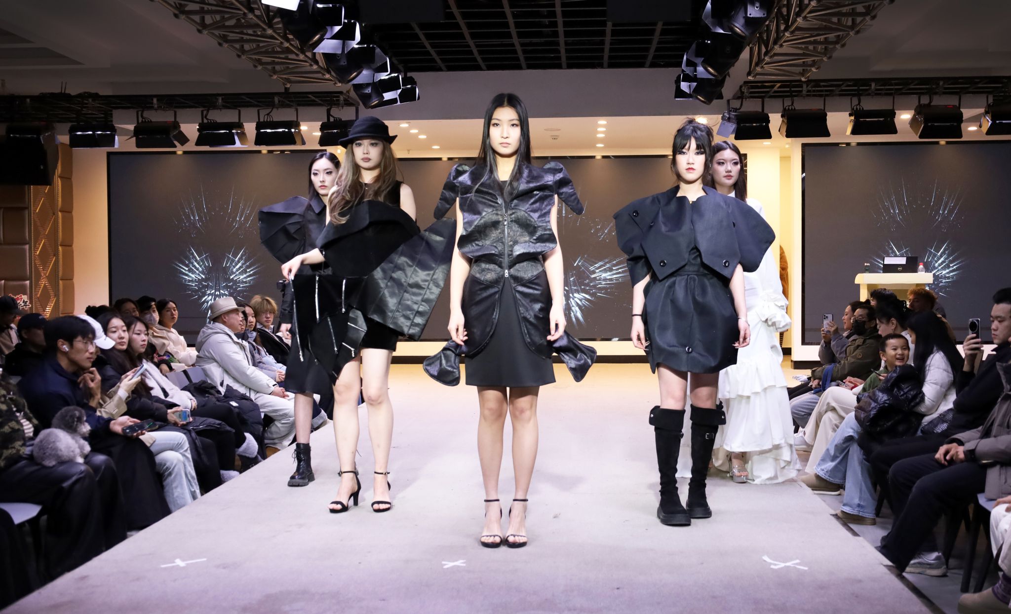 2024级动态展以“初界-Interface”为主题,呈现108套由学生独立完成的服装作品。作为学生首次专业展示,作品突破传统思维,展现了对廓形与结构的深入探索,彰显了扎实的专业基础与创作活力。