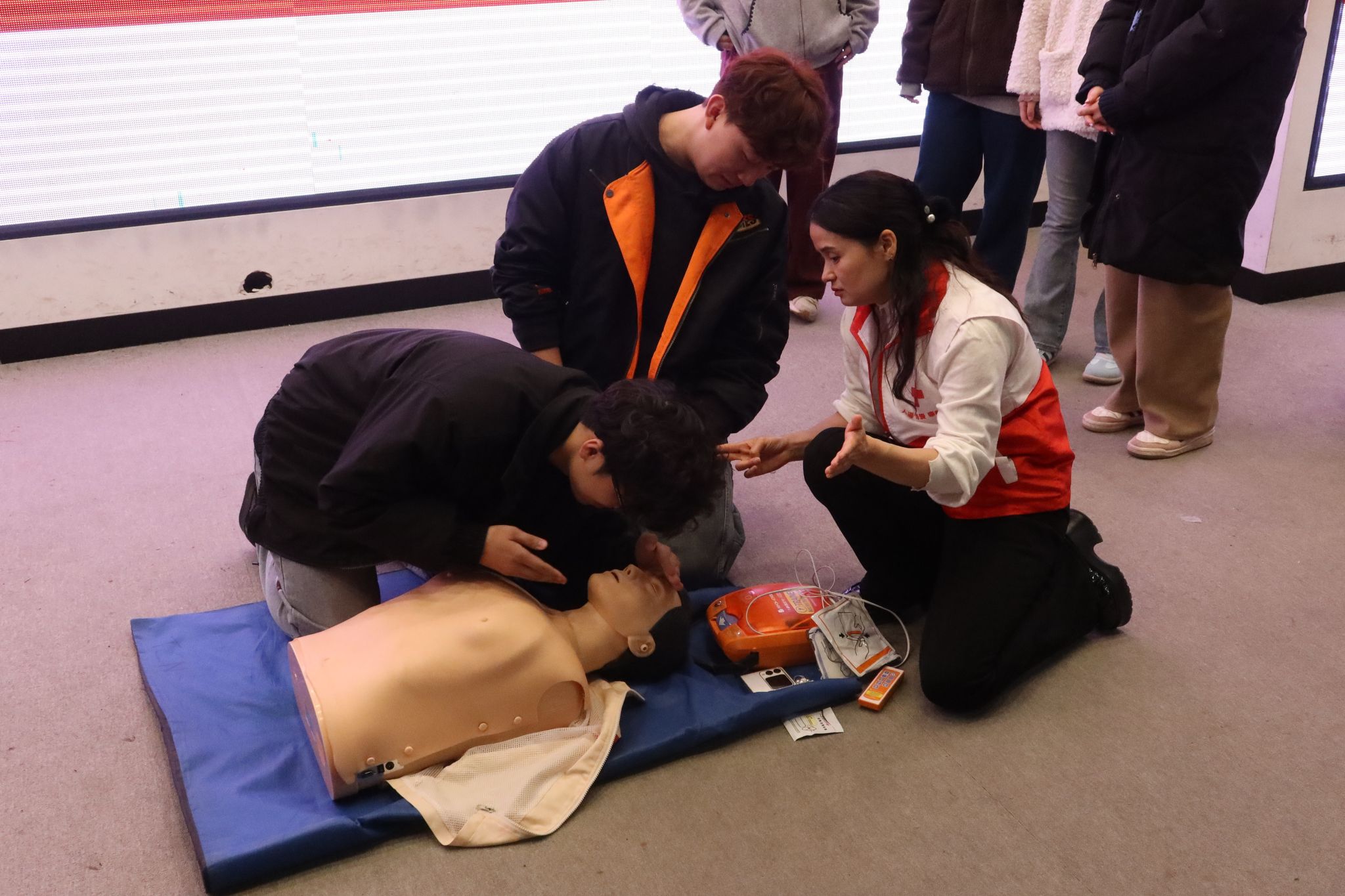 青年志愿者协会与碑林区红十字会共同举办急救知识培训活动,吸引150余名志愿者积极参与。活动特邀碑林区红十字会4位专业讲师进行授课,培训采用"理论+实操"的模式。理论教学通过真实案例和视频演示,重点讲解心肺复苏(CPR)和自动体外除颤器(AED)的操作要点;实操演练中,讲师手把手指导按压位置、AED电极片粘贴等关键步骤,志愿者两人一组进行模拟训练。活动现场学习氛围浓厚,志愿者们全神贯注投入训练,在专业指导下系统掌握了急救技能。