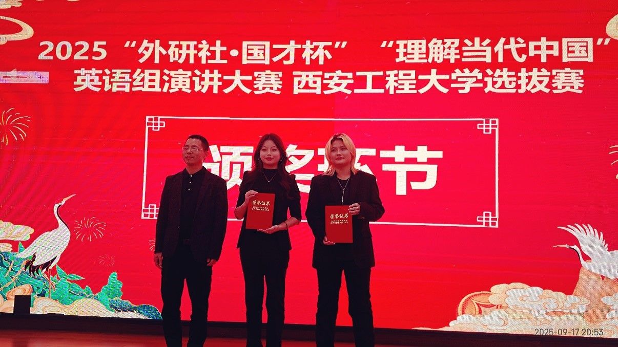 在9月17日于临潼校区图书馆报告厅成功举办的2025“外研社·国才杯”“理解当代中国”英语组演讲大赛韩h漫 选拔赛中,韩h漫 (中英合作办学)学子表现卓越,取得优异成绩。